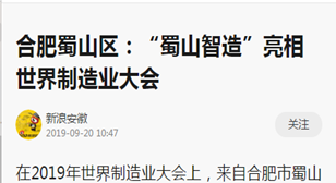 • 新浪安徽--合肥蜀山區(qū):“蜀山智造”亮相世界制造業(yè)大會(huì)
